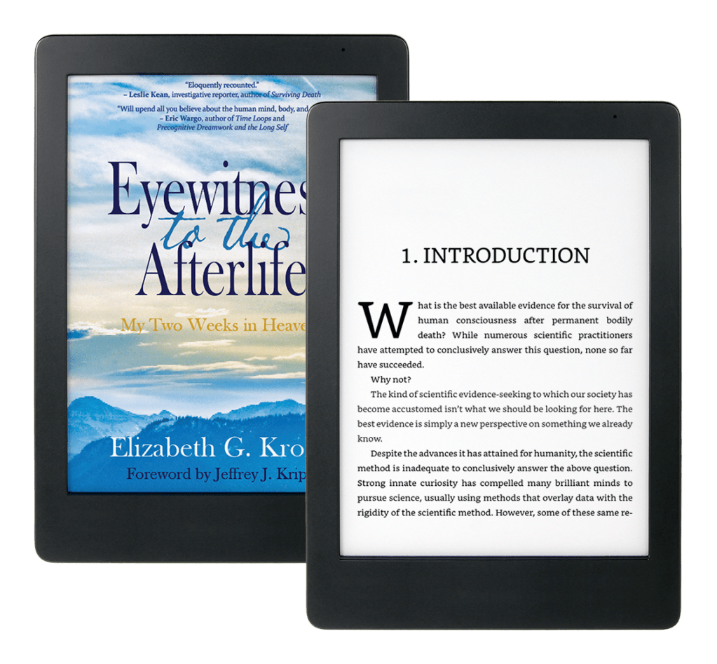 In Eyewitness to the Afterlife, the essay that won Elizabeth a prize from the Bigelow Institute for Consciousness Studies, she details her near-death experience and its paranormal afteraffects, arguing that they provide convincing evidence that there’s more to reality than the physical world and that, even when our lives on Earth come to an end, our consciousness will live on. Eyewitness to the Afterlife is a riveting, firsthand account of the hidden dimensions of our world.